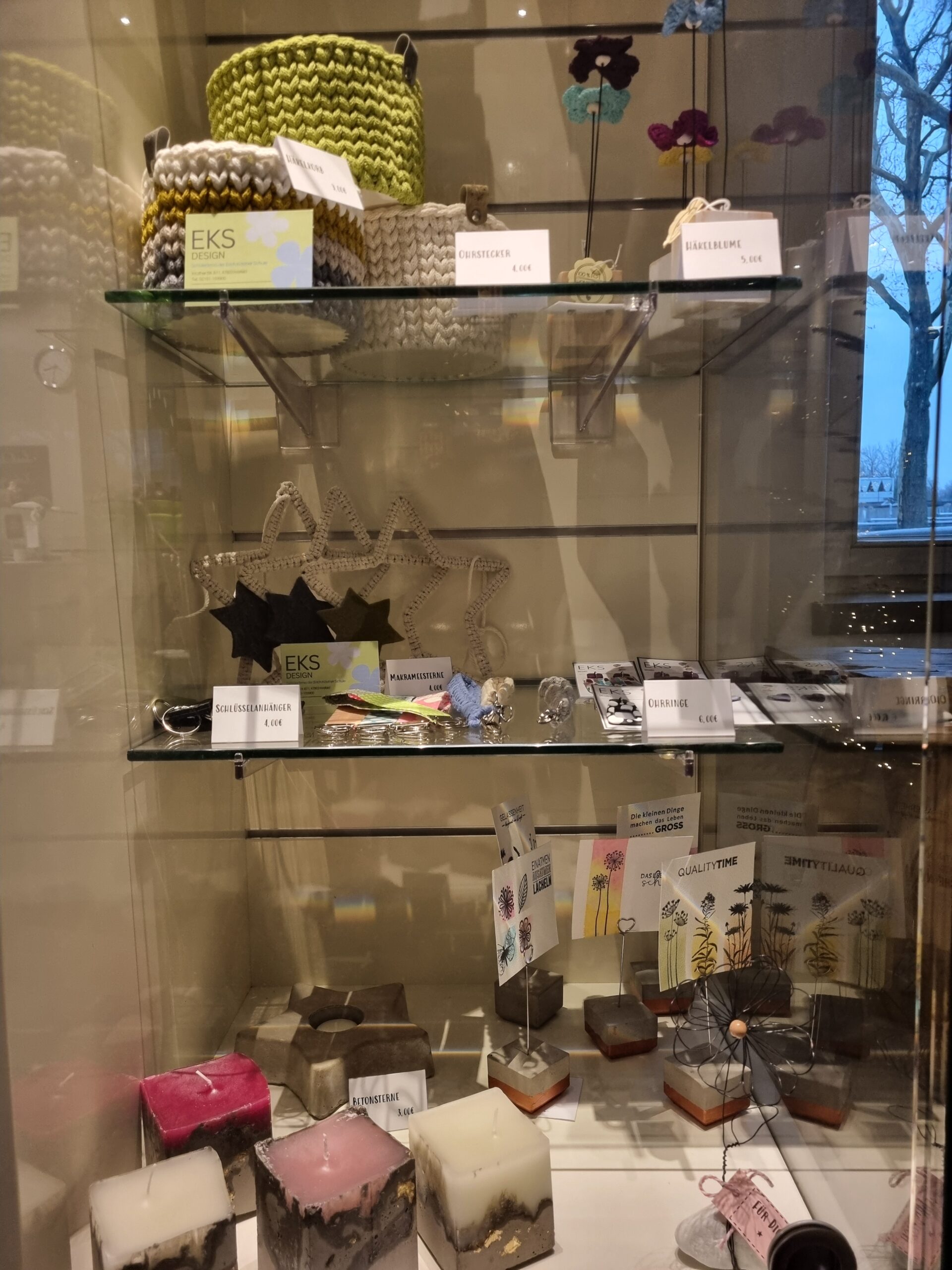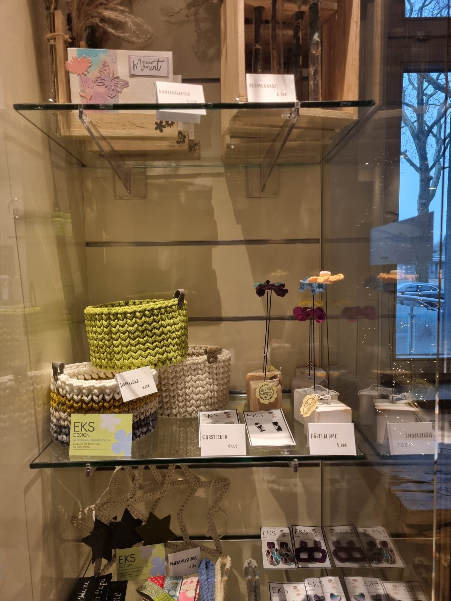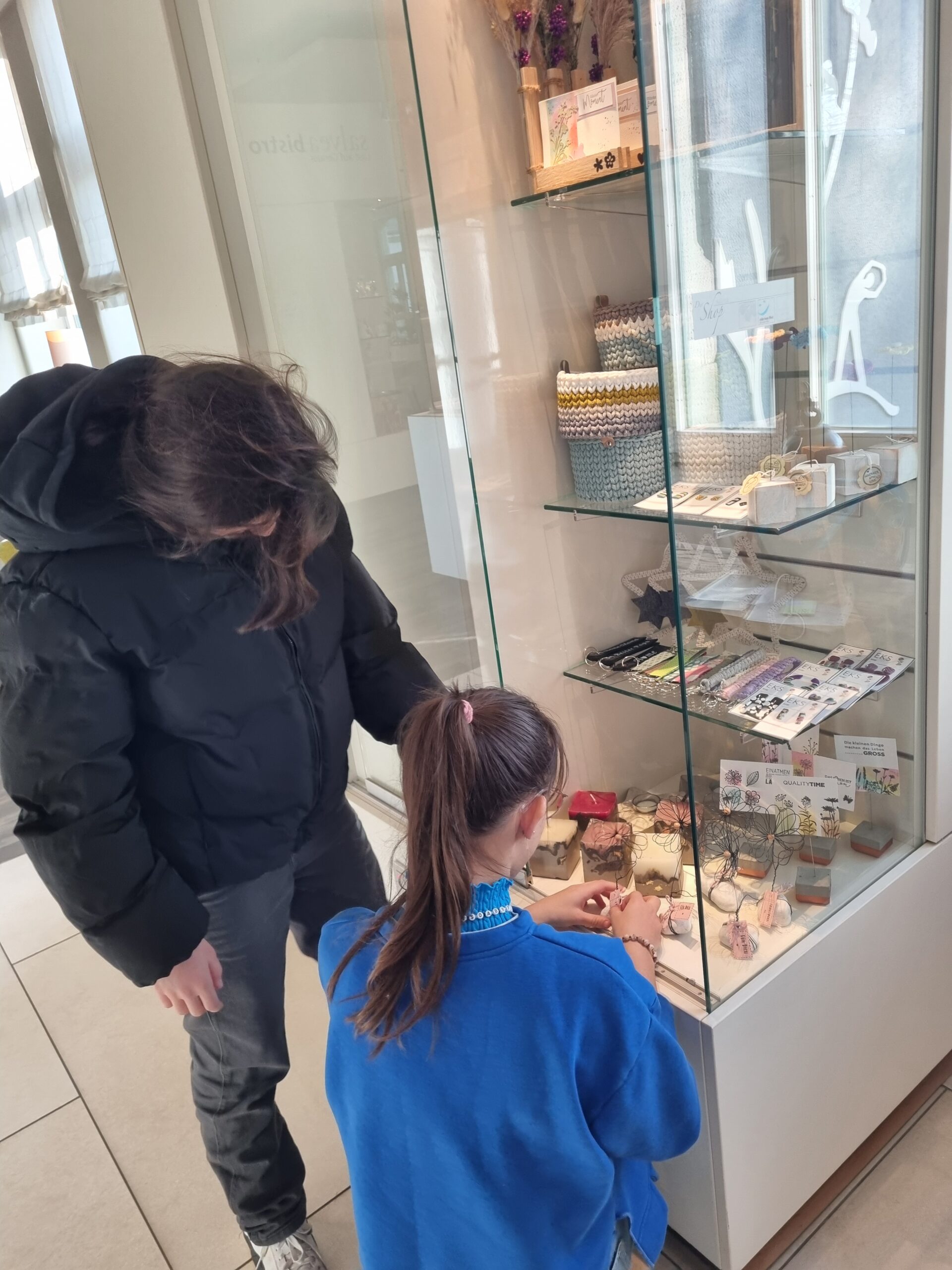 Die Produkte der Schülerfirma EKS Design können seit Dezember im Gesundheitszentrum SALVEA an der Westparkstraße erworben werden. Dank des Einsatzes unserer Schulpflegschaftsvorsitzenden Familie Wagner und der wertvollen Unterstützung von Frau Canadas von SALVEA werden Kartenhalter, Schlüsselanhänger, Kerzen und vieles mehr in einer Vitrine im Empfangsbereich ausgestellt. Wer handgemachte und kreative Geschenke sucht, wird hier sicher etwas finden. Der Verkauf erfolgt über die freundlichen Mitarbeiter*innen im Café. Wir bedanken uns bei allen Beteiligten für die tolle Gelegenheit, die Arbeit unserer Schüler*innen zu präsentieren!!!!